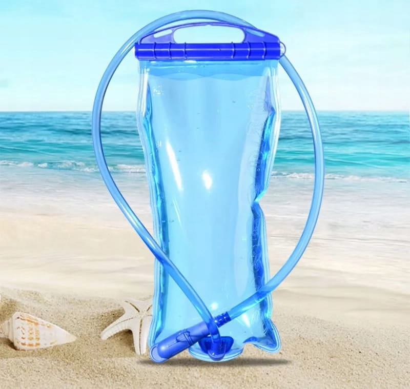 2 litrowa niebieska przezroczysta torba na wodę z szybkim uwalnianiem.