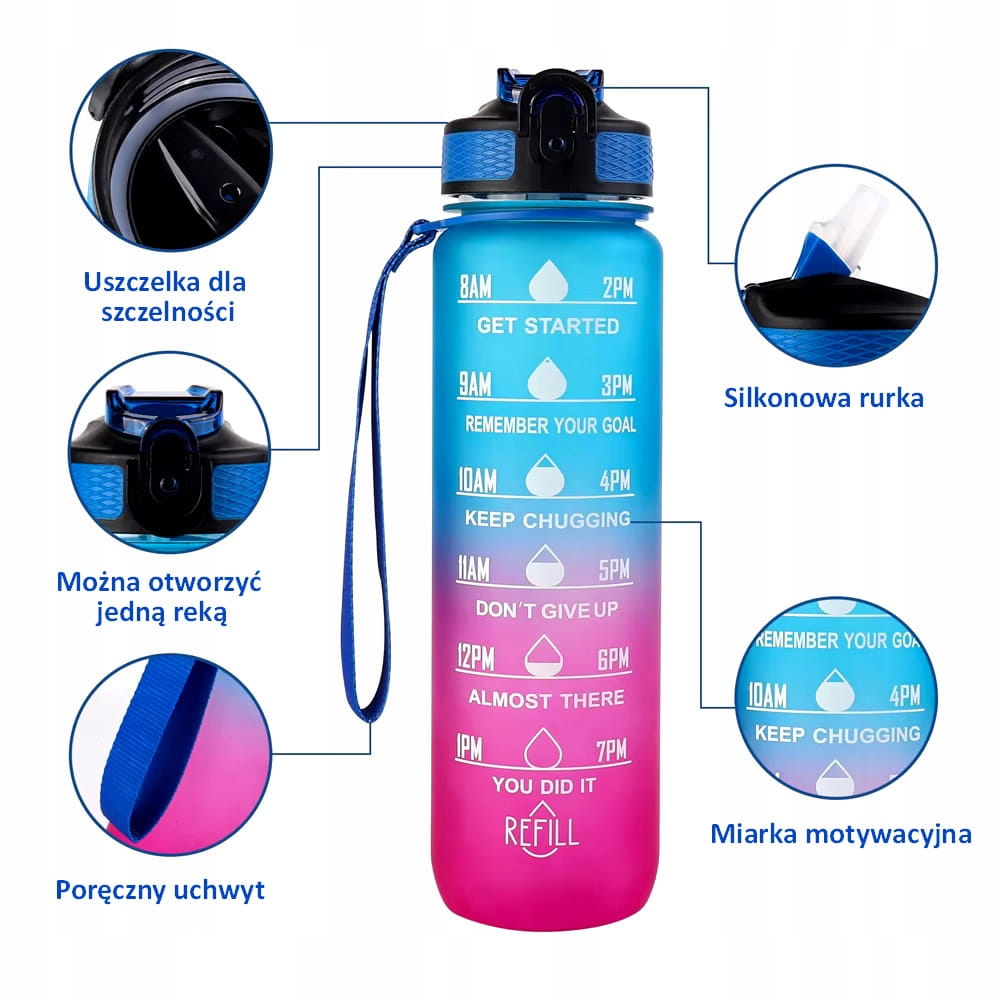 Butelka motywacyjna na wodę z miarką 1 LITR
