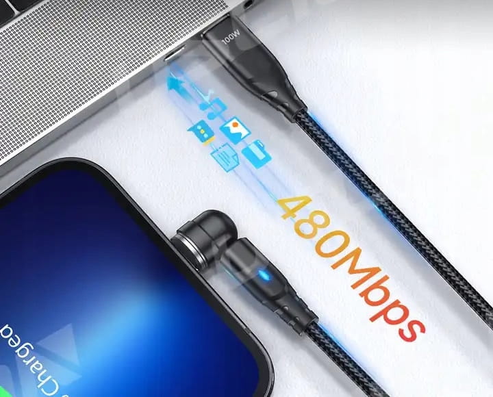 Najnowszy model kabla magnetycznego. Moc aż 100 W na złączu USB C umożliwia wykorzystanie możliwości każdej ładowarki, maksymalny prąd 5 A. Do ładowania telefonu, tabletu czy laptopa.