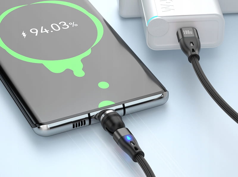 Najnowszy model kabla magnetycznego. Moc aż 100 W na złączu USB C umożliwia wykorzystanie możliwości każdej ładowarki, maksymalny prąd 5A