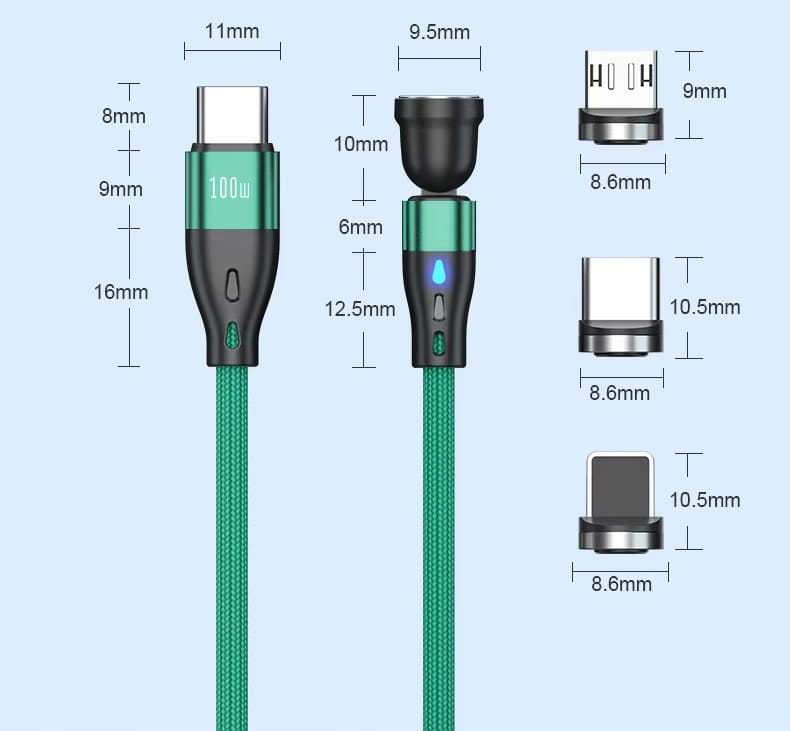 Kabel posiada trzy magnetyczne końcówki w zestawie. Magnes jest mocny a połączenie stabilne. Obsługuje szybkie łądowanie dla: