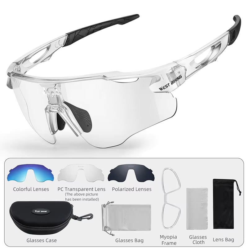 Okulary sportowe na rower rowerowe filtr uv fotochromy polaryzacja 3 szkła - transparentne