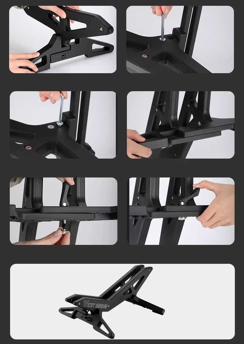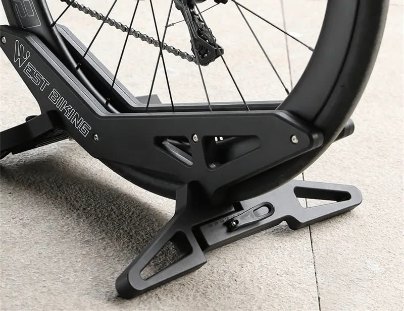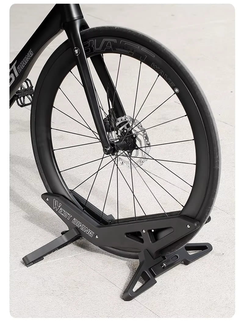 Regulowany stojak rowerowy WEST BIKING, wykonany z tworzywa ABS, posiada antypoślizgowe podkładki w czterech rogach. Pasuje do rowerów szosowych i górskich z kołami o szerokości od 30 mm do 80 mm. Może być dowolnie regulowany, aby dopasować się do konstrukcji większości kół dostępnych na rynku. Konstrukcja modułowa zapewnia większą stabilność podczas parkowania roweru, a łatwy demontaż zwiększa wygodę użytkowania.