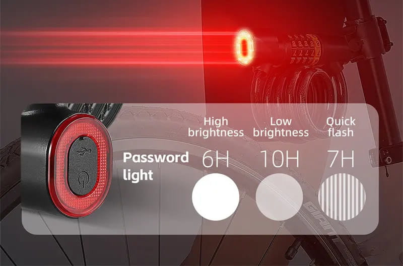 Zapięcie rowerowe stalowa linka na szyfr blokada do roweru lampka tylna led